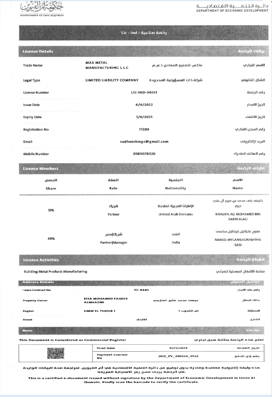 The team at Max METAL Manufacturing LLC went above and beyond to deliver exceptional service. Their professionalism, attention to detail, and commitment to quality made all the difference. We couldn't be happier with the results!"